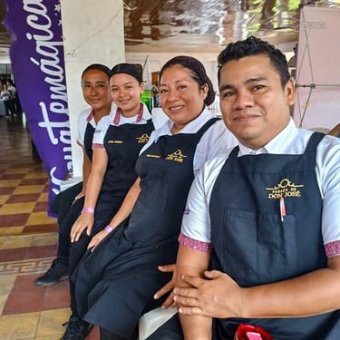 Los ingredientes protagonistas —café, cacao y la piña criolla de San Sebastián— inspiraron competencias vibrantes: plato fuerte con cacao y piña, plato fuerte con café y piña, y postres que fusionaron los tres sabores. Las competencias de Barismo, ArteLatte y Bartender elevaron el nivel técnico y creativo, con el apoyo de expertos como Daniel Yancor de Ensoluna y los mezcladores Angélica Medina, Raúl Cojolón y Henry Catú.
