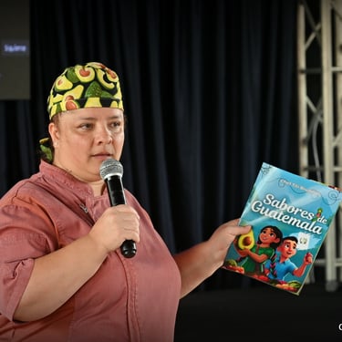 Las conferencias fueron un banquete de conocimiento: Abraham Az habló sobre neuroventas, Michell Pérez y Christian Galicia sobre estrategias digitales, y el chef Mario Campollo sobre cómo construir un destino turístico desde la gastronomía. La chef Euda Morales inspiró a niños y estudiantes de magisterio con la conferencia literatura gastronómica para niños y la Chef Titi Bruderer, con el apoyo de una diseñadora gráfico local (Meches), presentó el libro infantil “Sabores de Guatemala”, resaltando los ingredientes guatemaltecos y sembrando curiosidad gastronómica en los más pequeños.